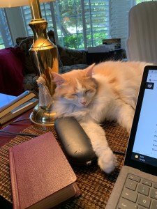 Have I told you about my cat? She lies curled now, on my desk, sleeping. She knows what she knows. And she knows it’s time for a nap. Soon she will hear me bustling in the kitchen, cooking dinner. Soon she will follow the sound of my voice to the kitchen, the sounds of love, the sounds she has grown to know well.