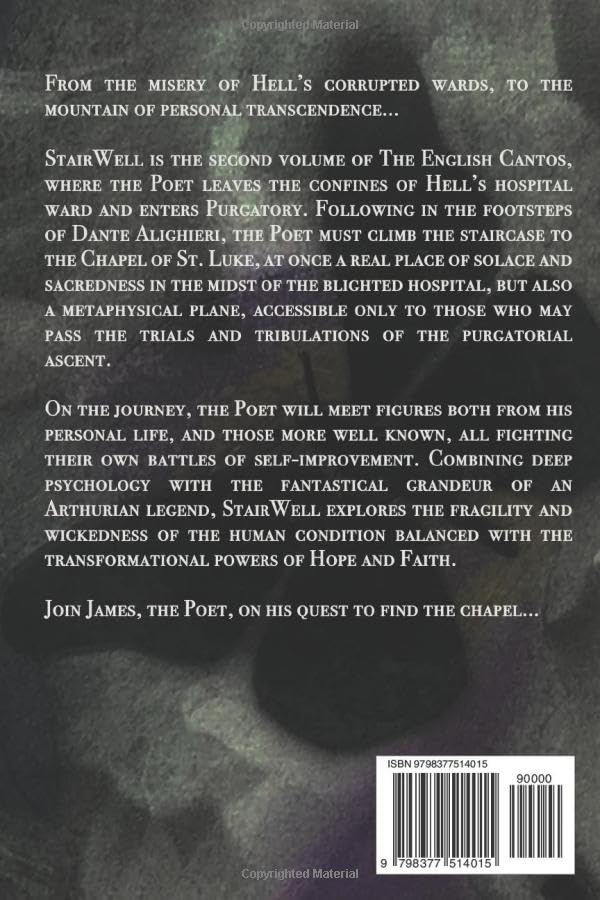 In this second volume of The English Cantos, James Sale leads us up the stairs of Purgatory, where intercessory prayer effects changes, allowing Christ to make us well, to drink from His well of life, to save us from ourselves. Virgil joins Dante and James our Poet as larger questions of history and philosophy and civilization form physical barriers to be scaled, tempting our Poet to remain and not venture higher.