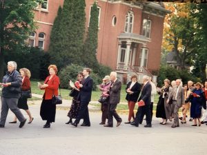 So we gathered, about one hundred of us, behind the tuba and the American flag, and set off to a rousing Onward Christian Soldiers, like some Salvation Army Band, this conservative, proper, East Coast, formal-liturgy congregation. God must have smiled.